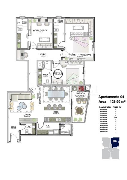 129,60 m² de área privativa