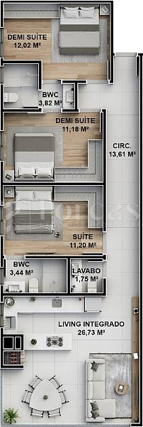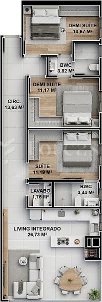 3 dormitórios (3 suítes)