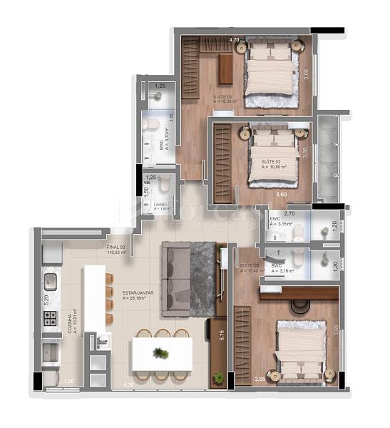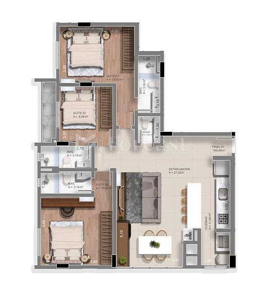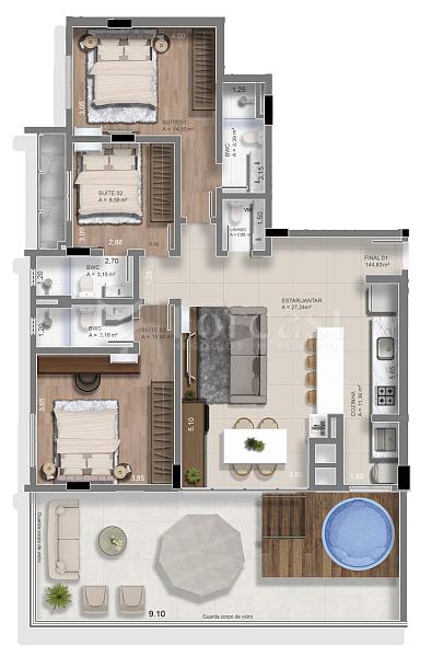 3 dormitórios (3 suítes)