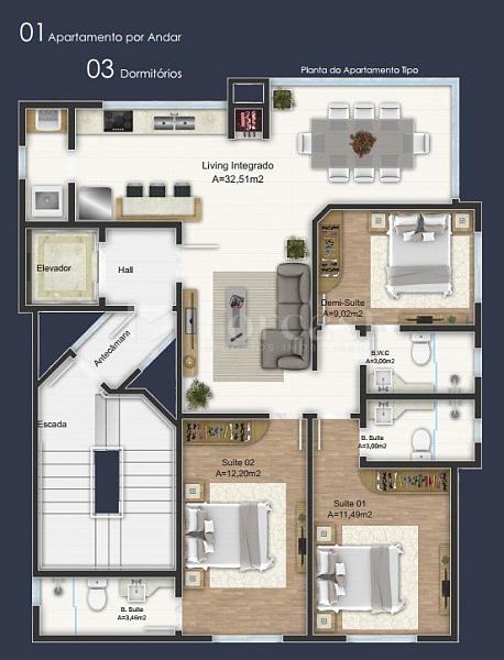 3 dormitórios (3 suítes)