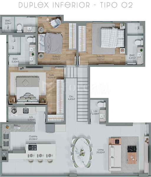 3 dormitórios (3 suítes)
