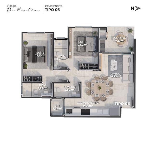 Apartamento no Edifício Villaggio Di Pietra em Camboriú - G-art INCORPORAÇÕES