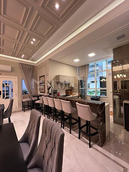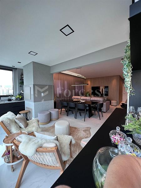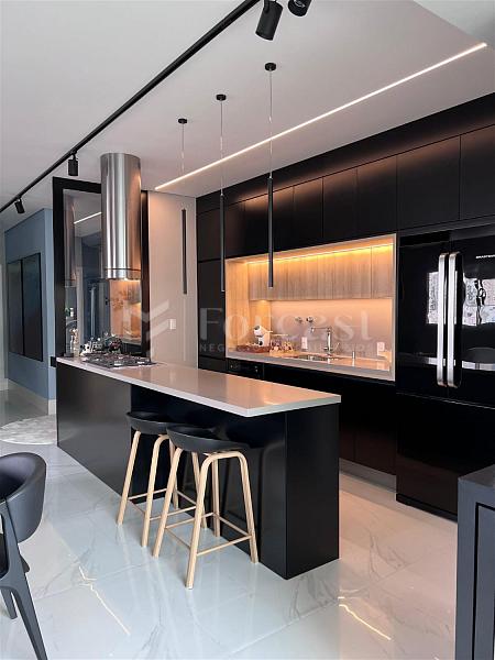 4 dormitórios, 5 banheiros, 4 suítes, 3 vagas de garagem